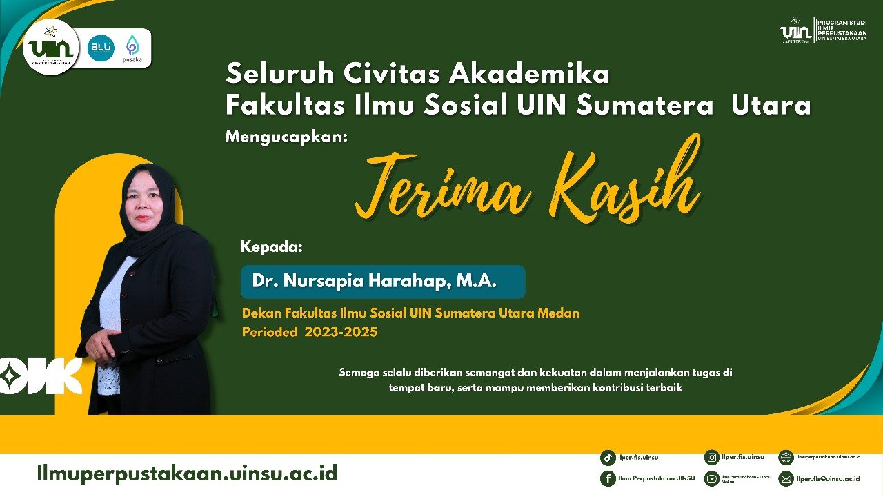 Prodi Ilmu Perpustakaan mendukung penuh kepemimpinan yang transformatif dan berorientasi pada keberlanjutan. Semoga sinergi dan kolaborasi yang terjalin ke depan dapat semakin memperkuat posisi FIS UIN SU sebagai institusi pendidikan unggulan dan TERDEPAN di Sumatera Utara dan Indonesia.