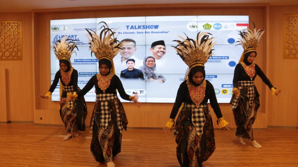 Pada kegiatan tersebut mahasiswa Ilmu Perpustakaan mempersembahkan tarian Melayu untuk menyambut para tamu undangan pada saat pembukaan hari pertama.