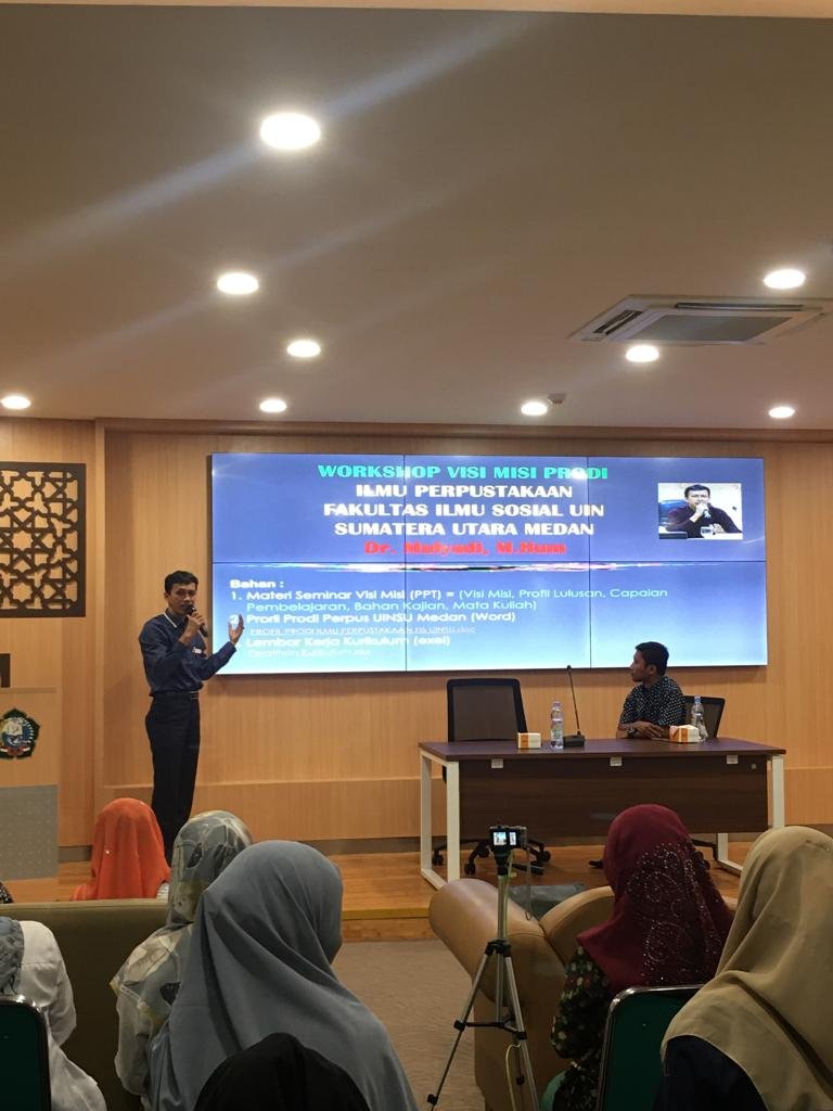 Senin, 07 November 2022. Prodi Ilmu Perpustakaan menyelenggarakan workshop penyusunan visi dan misi barunya di Aula Fakultas Ilmu Sosial Kampus IV UINSU Jl. Padang golf, Tuntungan. Workshop ini dihadiri oleh para pimpinan fakultas, unit pengembangan mutu, kepala laboratorium, dosen fakultas dan prodi, stakeholder, alumni, himpunan mahasiswa jurusan dan mahasiswa. Hadir sebagai narasumber dalam kegiatan tersebut Dr. Mulyadi, M.Hum. dari UIN Raden Fatah Palembang dan merupakan pengurus Assosiasi dosen ilmu perpustakaan PTKIN Indonesia. Workshop dibuka oleh Wakil Dekan I Bidang Akademik Dr. H. Sorimonanang , M.Th. Dilanjutkan dengan kata sambutan dari Ketua Prodi Imu Perpustakaan Bapak Dr. Abdul Karim Batubara, M.A. dalam sambutannya Kaprodi Ilmu Perpustakaan menghimbau kepada semua peserta workshop visi misi untuk memberikan ide dan pemikirannya guna menyusun kembali visi dan misi Prodi Ilmu Perpustakaan yang sudah habis masa berlakunya pada 2020 lalu. “Seharusnya workshop ini diselenggarakan pada 2020 karena masa berlaku visi dan misi yang lama itu habis pada 2020, tapi karena satu dan lain hal workshop penyusunan visi dan misi ini baru dapat kita selenggarakan sekarang. Harapan Saya agar para undangan yang hadir disini, yaitu dari kalangan mahasiswa, HMJ, Dosen, dan para stakeholder dapat memberikan sumbangsih ide dan pemikirannya untuk merumuskan visi dan misi prodi Ilmu Perpustakaan yang kita banggakan ini.” Arahan Beliau. Workshop dilanjutkan dengan pemaparan materi terkait penyusuan visi dan misi oleh Bapak Dr. Mulyadi, M.Hum. kemudian peserta workshop dibagi menjadi dua kelompok untuk selanjutnya melakukan diskusi perumusan visi dan misi. Workshop diakhiri dengan pemaparan usulan rumusan visi dan misi dari kedua ketua kelompok diskusi yaitu Bapak Dr. Abdul Karim Batubara, M.A. dan Ibu Dra. Retno Sayekti, M.LIS. Selanjutnya usulan rumusan visi dan misi dari kedua kelompok akan difinalisasi pada tingkat internal prodi Ilmu Perpustakaan untuk rumusan final. (ilpus/Mifta)