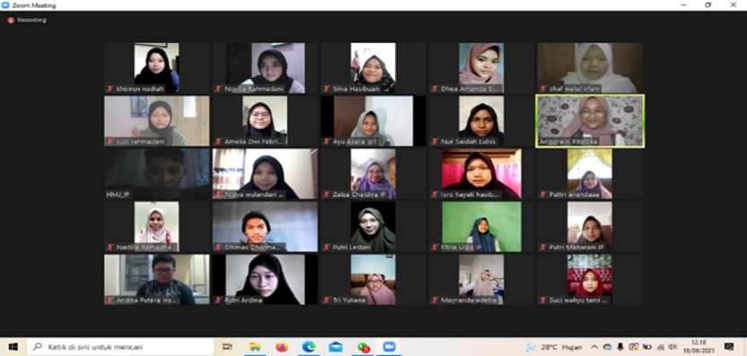 Acara webinar ini merupakan acara pertama yang diselenggrakan oleh HMJIP pada periode kepengurusan 2021-2022 yang bertemakan Cerdas Bermakalah Cermin Insan Cendekia. Webinar Klinik Menulis ini diikuti oleh mahasiswa Prodi Ilmu Perpustakaan semester 1 dan semester 3 yang berjumlah 126 orang. Para pesera cukup antusias mengikuti rangkaian acara dari awal hingga akhir. Webinar ini menghadirkan dua narasumber yang sangat berkompeten dan berpengalaman dibidang kepenulisan makalah yaitu bapak M.Rizky Kurniawan Hsb, S.Pd yang merupakan seorang guru lulusan Pendidikan Ilmu Geografi Universitas Negeri Medan, dan pemateri kedua yaitu Ibu Khoirun Nadiah S.IP yang merupakan pustakawan dan mahasiswa lulusan Ilmu Perpustakaan Universitas Islam Negeri Sumatera Utara. Webinar ini dimulai pada pukul 09.00 WIB, dibuka oleh Anggraini Pitaloka selaku Moderator yang merupakan kepala bidang departemen penelitian dan keilmuan Himpunan Mahasiswa Jurusan Ilmu Perpustakaan. Kegiatan ini juga dihadiri oleh sekretaris program studi ilmu perpustakaan, fakultas ilmu social, UINSUMUT yaitu Ibu Franindya Purwaningtyas Ma. Yang mana beliau juga memberi sambutan kepada semua peserta yang hadir dalam acara ini. Selanjutnya adalah kata sambutan oleh Imam Kurniady selaku ketua Himpunan Mahasiswa Jurusan Ilmu Perputakaan, dalam kata sambutannya beliau berharap kegiatan ini dapat menambah ilmu dan dapat membantu mahasiswa dalam mengerjakan makalah, beliau juga mengatakan bahwa kegiatan ini bisa menjadi saranan silaturahmi antar mahasiswa ilmu perpustakaan.
